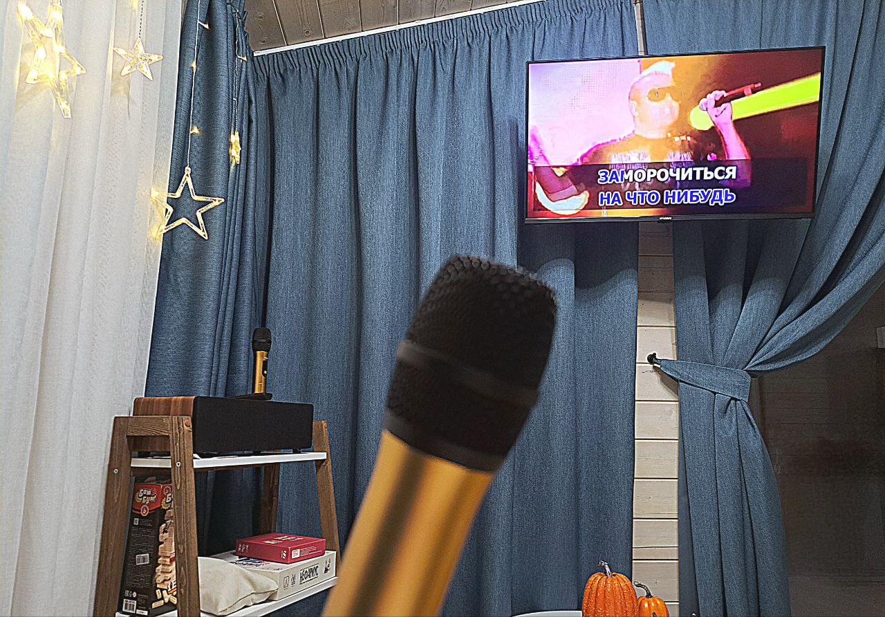 Теперь в наших домиках можно не только наслаждаться уютом и природой, но и петь любимые песни! 🎤🎶 Мы добавили современную систему караоке с двумя микрофонами и отличным звуком. Это отличное развлечение для компании друзей, семейных вечеров или праздничных посиделок.